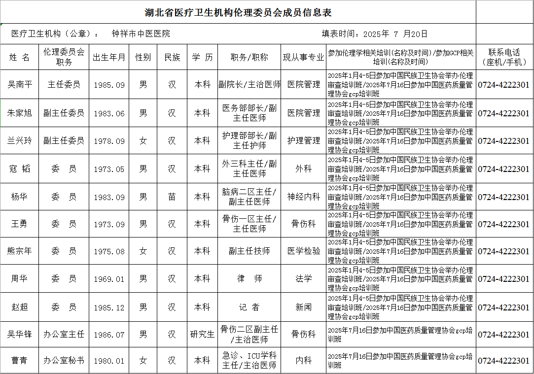 | 关于成立钟祥市中医医院临床试验伦理委员会的公示 |